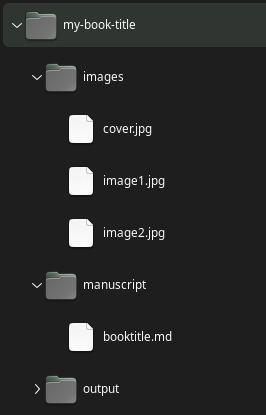 Before you enter any commands, I suggest setting up your book project’s folder structure something like this: